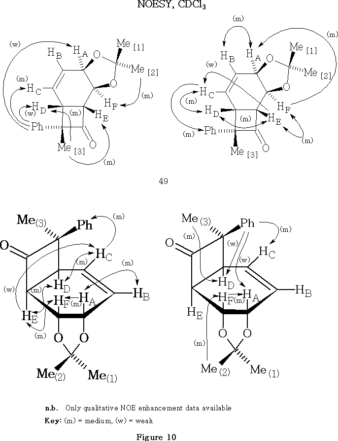 The proposed overall structure for the [2 + 2] endo- phenyl major product 49 is consistent with the NOESY evidence, Figure 10 .