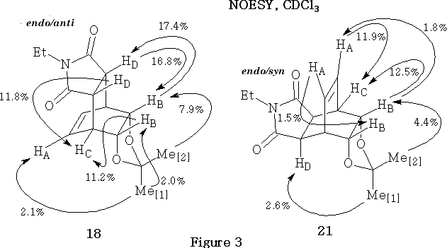 NOESY Analysis of the Endo/Anti and Endo/Syn Adducts (18) and (21)