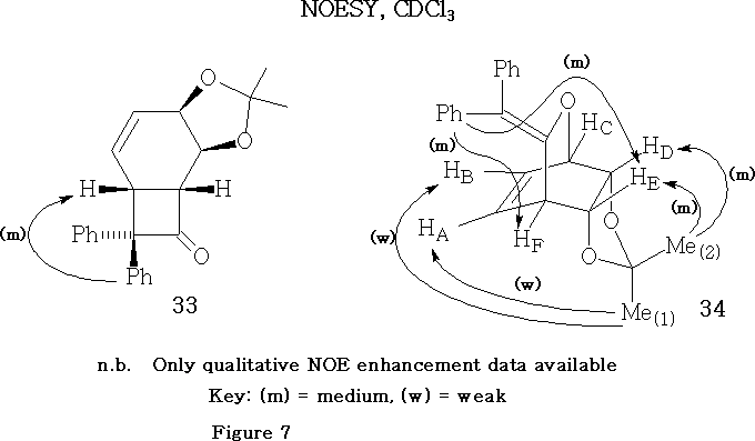 The NOESY results depicted in Figure 4 for adduct 22 are consistent with the proposed endo/syn structure. Confirmation of this structural proposal was later provided by X-ray crystallographic analysis.
