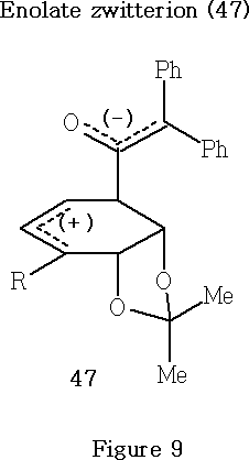 Tidwell40,41 has proposed that the reaction of cis- isopropylidene-cyclohexadienes ( e.g. 12, 35-38 ) with diphenylketene 29 , and the thermal isomerisation reactions of the resultant adducts, probably occur by an ionic mechanism involving the zwitterionic intermediate 47 . See also Reference 51 .