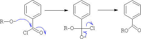 b) Basic catalysts, to give RO- , can be used; i.e. they increase the nucleophilicity of the alcohol. These cannot be used with free carboxylic acids, as they would react to give the salts, but are used with acid chlorides. This is the Schotten Baumann2 reaction.