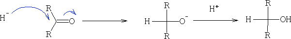 3. Reduction of aldehydes and ketones: this is done using H2/Pt, LiAlH4 and NaBH4 (these being a source of H-)