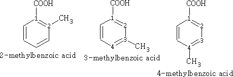 In benzene the numbering is as follows, the main functional group taking position 1.