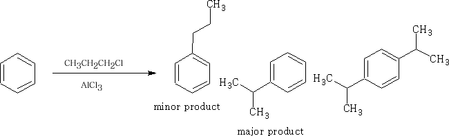 This reaction is called the Friedel-Crafts2 alkylation. However, propyl chloride gives: