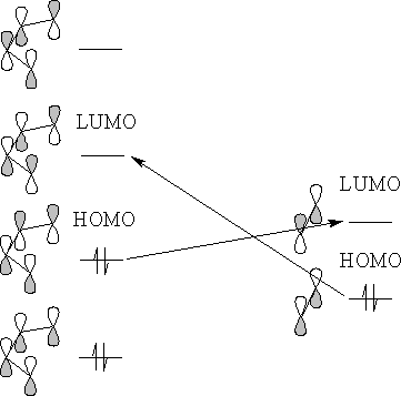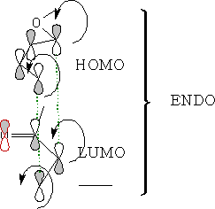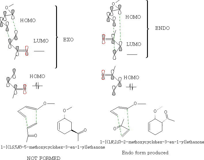 There are two possible interactions, the HOMO of the diene with the LUMO of the alkene or the HOMO of the alkene with the LUMO of the diene. Since the HOMO of the diene has the highest electron energy the reaction will be the HOMO of the diene with the LUMO of the alkene.