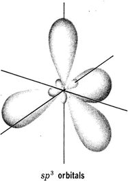 This is a case of hybridisation this makes four equivalent bonds called sp3 molecular orbitals Figure 8(a); this indicates that 1 s and 3 (2p) orbitals have mixed:
