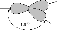 The sp2 hybridised orbitals have a similar shape to the sp3 orbitals but we only have 3 orbitals to arrange as far away as possible from one another. The angle they choose is 1200 , what we get this time is a trigonal shape {figure 10};